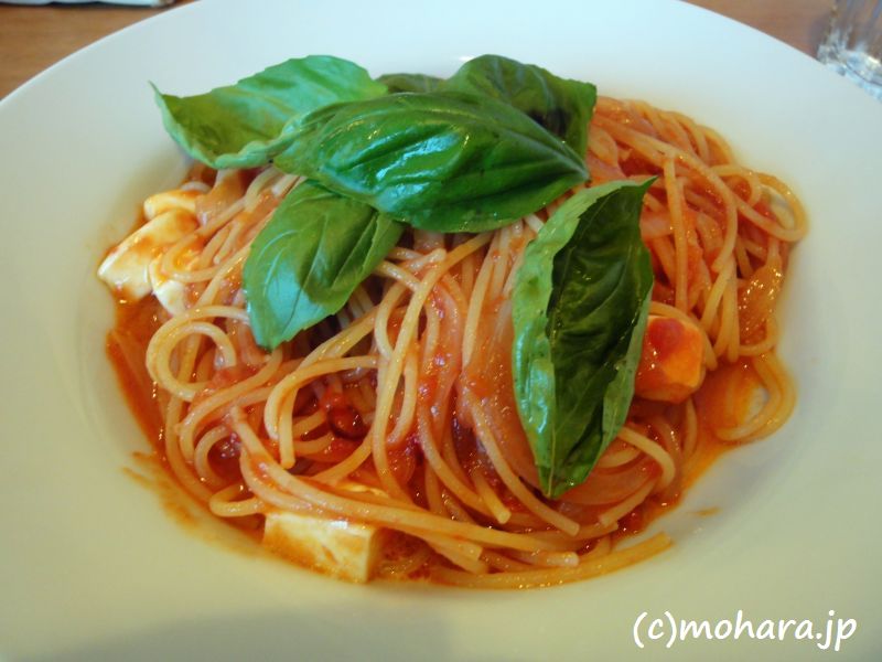 私の『トマトモッツァレラチーズとフレッシュバジルのスパゲティー』(800円)