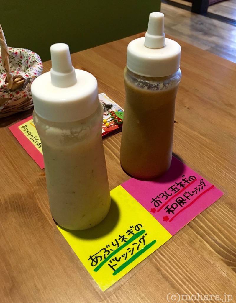 ドレッシングはかけた状態では無く、ボトルごと持ってきてくれます。