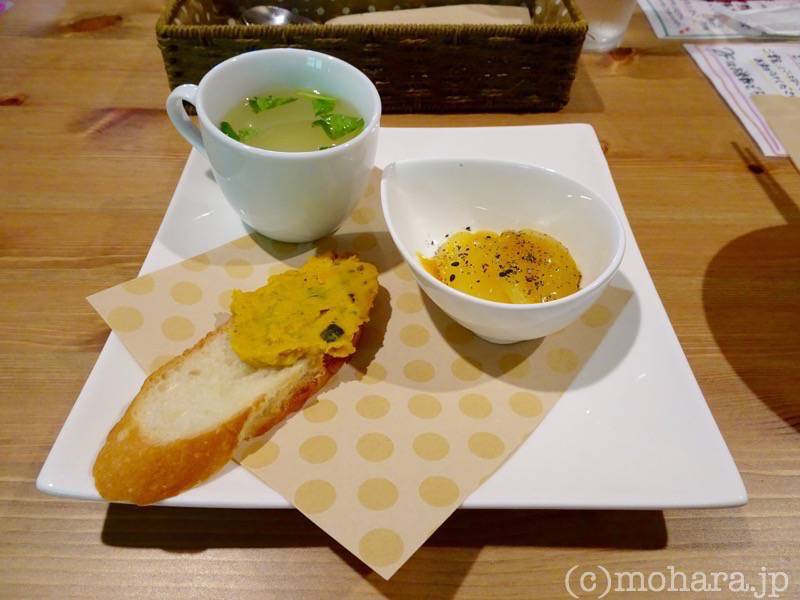 ドリンク以外にサラダ、前菜・スープ、デザートが付いて